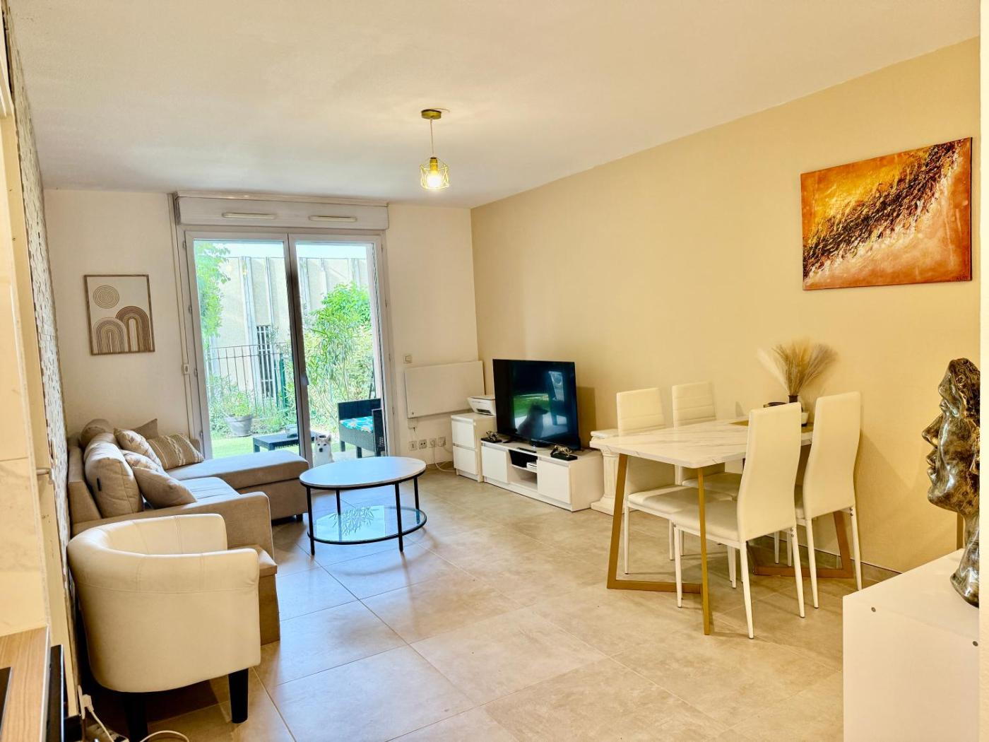 Appartement - Vue sur Jardin. This apartment features a hot tub. Boasting a private entrance, this apartment features 1 living room, 1 separate bedroom and 1 bathroom with a bath and a hairdryer. Guests can make meals in the kitchen that has a stovetop, a refrigerator, a dishwasher and kitchenware. Featuring a terrace with garden views, this apartment also features a washing machine and a flat-screen TV. The unit has 2 beds.