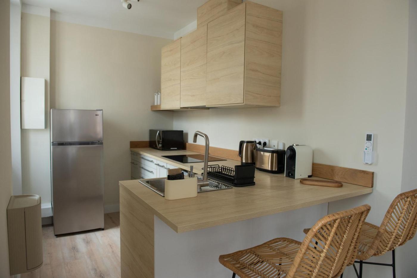 Appartement 2 Chambres. This apartment comprises 1 living room, 1 separate bedroom and 1 bathroom with a shower and free toiletries. Meals can be prepared in the kitchen, which comes with a stovetop, a refrigerator, a dishwasher and kitchenware. This apartment is air-conditioned and features a seating area with a TV, a washing machine, a coffee machine, a dining area, as well as a wardrobe. The unit offers 2 beds.