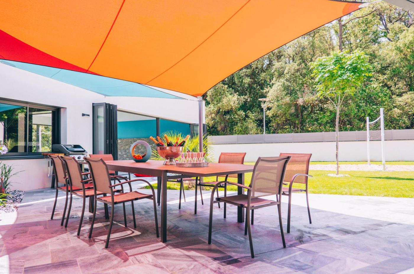 Maison de Vacances. The private pool and hot tub are the special features of this holiday home. Boasting a private entrance, this spacious holiday home also includes 5 separate bedrooms and 3 bathrooms with a bath and a shower. Guests will find a stovetop, a refrigerator, a dishwasher and kitchenware in the well-fitted kitchen. The holiday home also features a barbecue. The air-conditioned holiday home offers a TV, a washing machine, a coffee machine, a safe deposit box as well as garden views. The unit has 9 beds.