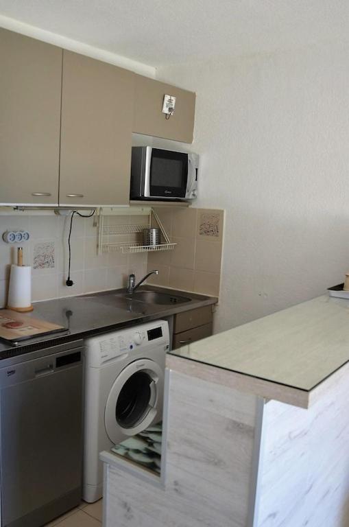 Studio - Vue sur Mer. Vous pourrez préparer vos repas dans la cuisine équipée de plaques de cuisson, d’un réfrigérateur, d’un lave-vaisselle et d’ustensiles. Ce studio dispose de la climatisation, d’un lave-linge, d’une terrasse avec vue sur la mer et d’une salle de bains privative avec une douche à litalienne. Ce logement comporte 3 lits.