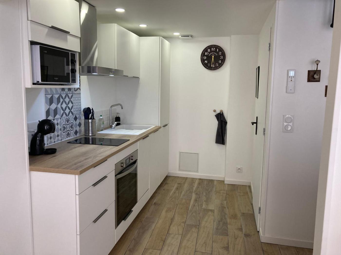 Appartement 1 Chambre. Featuring a private entrance, this air-conditioned apartment consists of 1 living room, 1 separate bedroom and 1 bathroom with a walk-in shower and a hairdryer. The well-equipped kitchen has a stovetop, a refrigerator, a dishwasher and kitchenware. This apartment features a washing machine, soundproof walls, a flat-screen TV with streaming services and a terrace. The unit offers 1 bed. ;