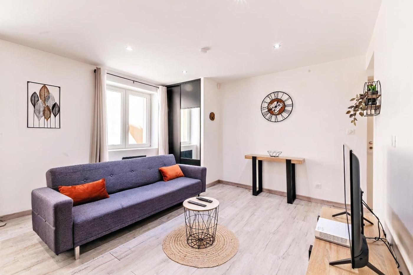 Appartement 1 Chambre. Featuring a private entrance, this apartment consists of 1 living room, 1 separate bedroom and 1 bathroom with a shower and a hairdryer. The well-equipped kitchen features a stovetop, a refrigerator, a dishwasher and kitchenware. The apartment provides soundproof walls, a coffee machine, a seating area, a dining area, as well as a flat-screen TV with streaming services. The unit offers 2 beds.