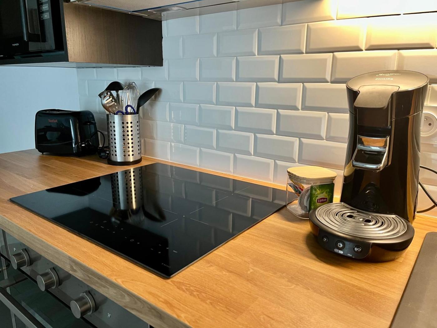 Appartement 1 Chambre. The fully equipped kitchen has a stovetop, a refrigerator, kitchenware and an oven. The apartment features parquet floors, a seating area with a flat-screen TV, a washing machine, a coffee machine, as well as a dining area. The unit has 2 beds.