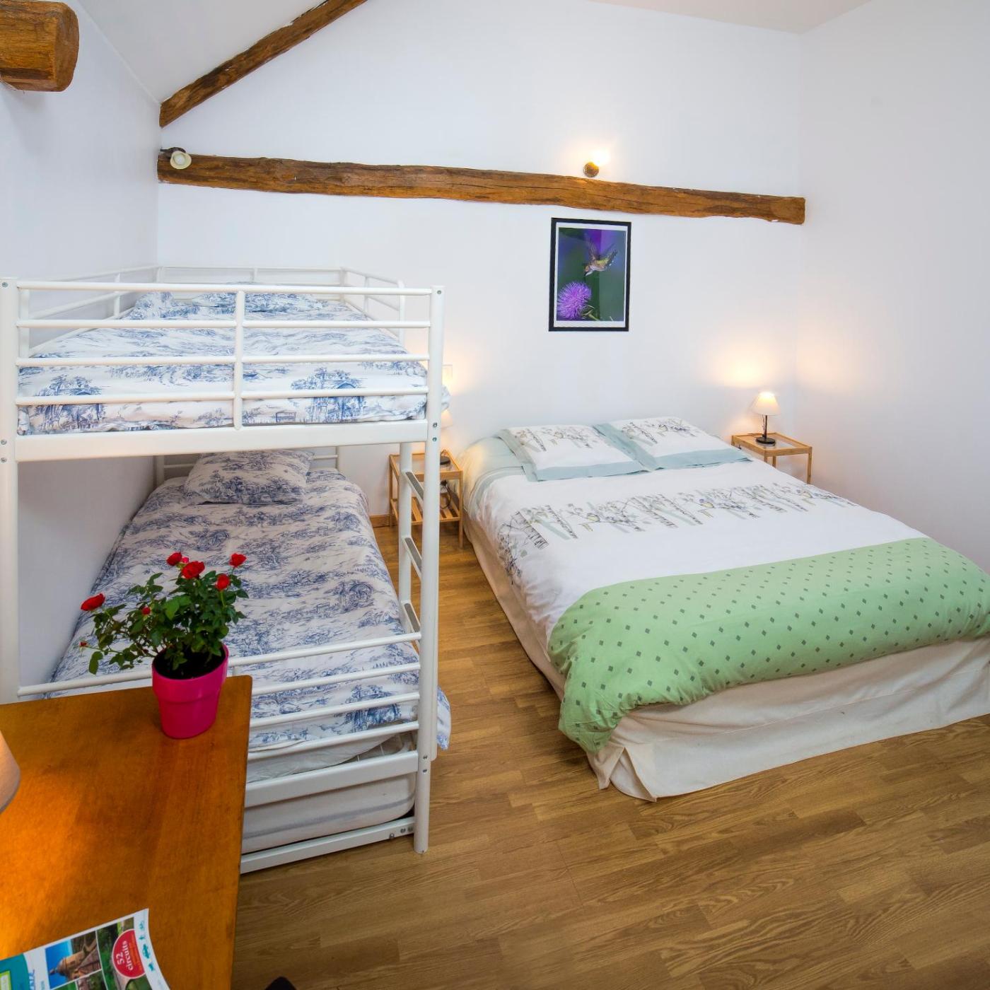 Chambre Familiale. Offering free toiletries, this family room includes a private bathroom with a shower and a hairdryer. A wardrobe, parquet floors and heating are offered in this family room. The unit has 3 beds. ;